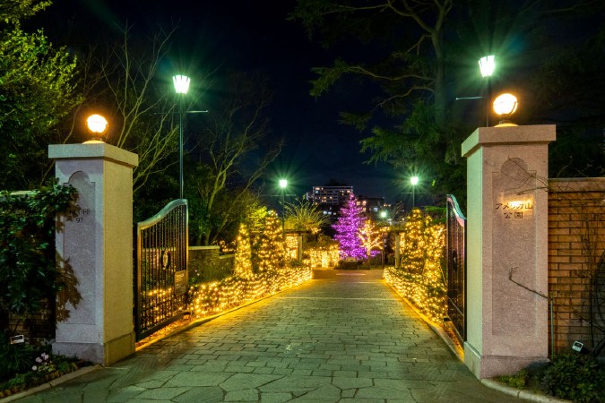 アメリカ山公園で開催されるウインターイルミネーション。ピンク色のメインツリーを中心に、光のトンネルや光の階段、樹木が美しくライトアップされ、園内全体が温かい光で包まれます。公園からはマリンタワーやベイブリッジの夜景も望め、イルミネーションとともに素晴らしい景色を楽しめるひとときです。