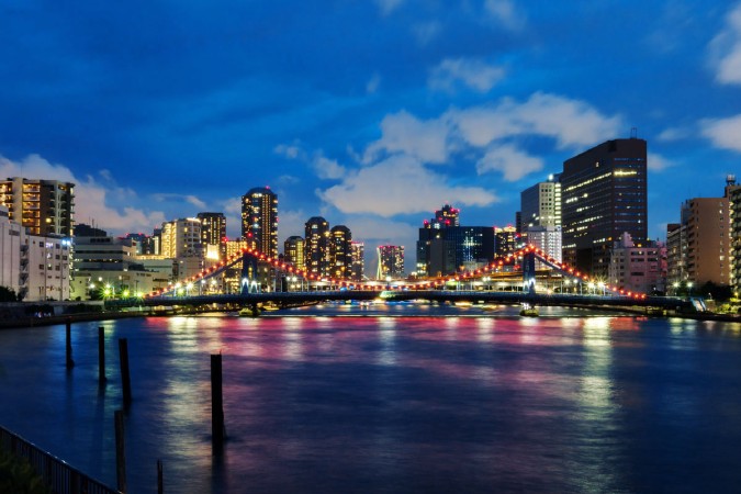 • 夜景 街並み 橋 川