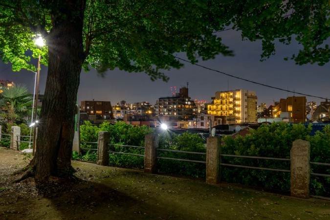 小高い丘に位置する約1000年の歴史を持つ神社で、主祭神は誉田別命です。境内には樹齢150~200年のシイの木があり、自然豊かな環境が広がっています。また、境内からの景色は「品川百景」に選ばれ、周辺の住宅街から東京タワーまで望むことができます。