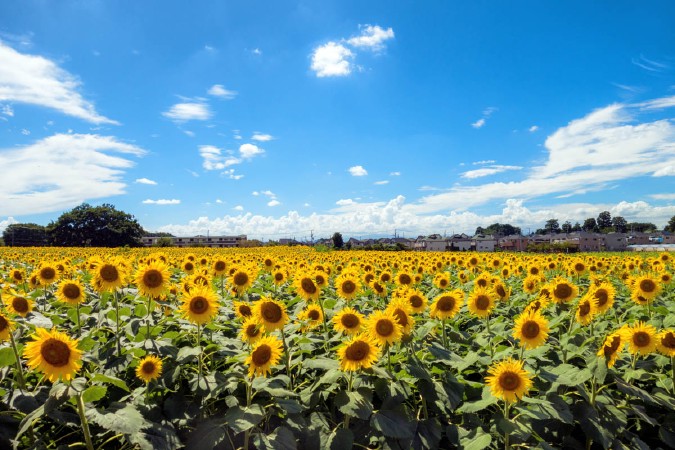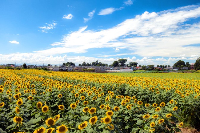 清瀬市で開催されるひまわりの祭りで、広さ24,000平方メートルの農地に約10万本のひまわりが咲き誇り、東京都内最大級のひまわり畑として知られています。都会の喧騒を離れ、青空の下に広がる鮮やかなひまわりの海を楽しむことができます。