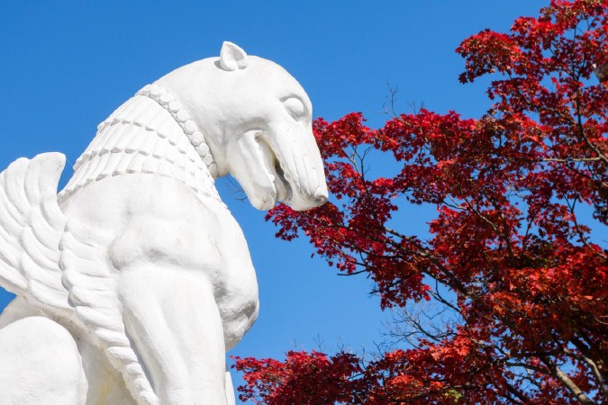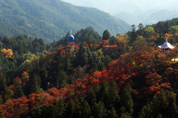 埼玉百選に選ばれた白雲山に位置する寺院。標高約460メートルの山頂に立つ高さ33メートルの救世大観音をシンボルに、平和観音、玄奘三蔵塔、大鐘楼など、多くの仏教建築点在しています。秋には真っ赤な紅葉が境内を鮮やかに染め上げ、爽やかなハイキングを楽しむことができます。