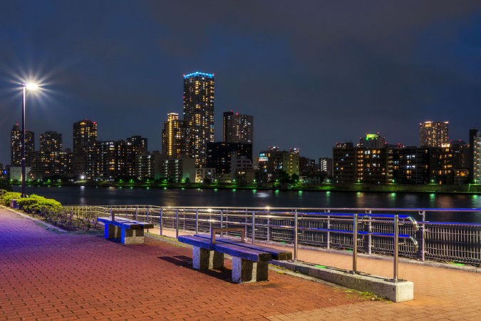勝鬨橋のそばにある水辺の公園で、大きな銀色の球体がシンボルとなっています。園内にはベンチや遊歩道が整備され、対岸に立ち並ぶビル群や勝鬨橋を眺めることができます。また、春には桜が咲き、穏やかな隅田川の流れとともに季節の風情を感じられます。