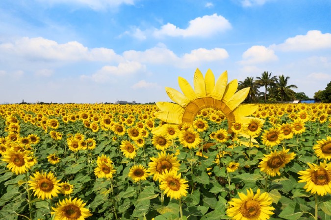 広さ約32,000平方メートルのひまわり畑で、ワット・サワーンアーロムに隣接しています。敷地内にはさまざまな撮影スポットが設けられ、一面に咲くひまわりの鮮やかな黄色が青空に映え、訪れる人々を魅了します。