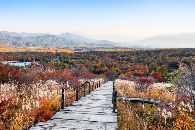 赤岳東側の尾根上に位置する標高1542メートルの小高い丘。6月中旬には1000本以上のレンゲツツジが咲き誇る名所として知られており、秋には美しい紅葉を楽しめるスポットとしても有名です。山頂には展望台があり、清里高原や南アルプスなどの雄大な景色を一望することができます。